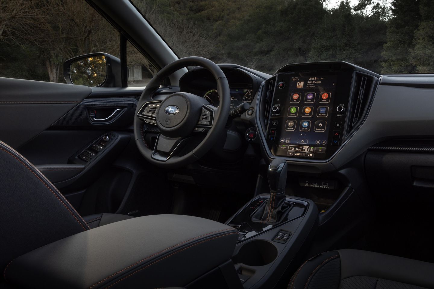 La garde au sol demeure inchangée par rapport au Crosstrek standard, offrant une hauteur suffisante pour les chemins d'accès aux chalets ornierés et les entrées non déneigées. Le positionnement de la batterie du système hybride sous le plancher de chargement ne réduit pas l'espace intérieur et ne compromet pas les angles d'approche et de sortie.